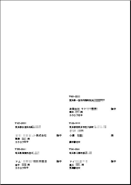 上の宛名(特に1番目と2番目)があいた状態で印刷すると、紙詰まりする場合があります。