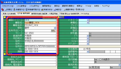 顧客一覧から選択したデータが注文書作成画面の顧客情報にセットされます。