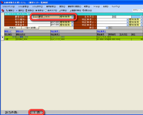 初期表示は顧客マスタに登録されている全件が表示されます。