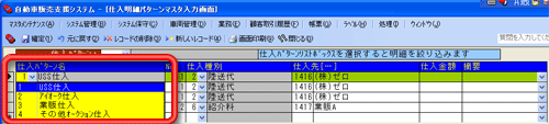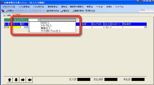 なお、仕入入力画面の仕入パターンリストボックスに表示される内容は、