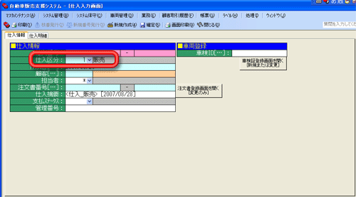 仕入入力画面の仕入区分(下図赤枠) = 仕入パターンマスタの仕入区分